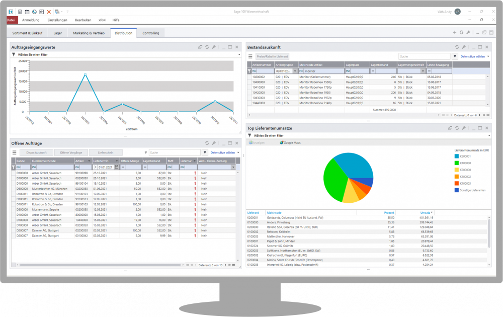 Das Bestellwesen liefert Vorschläge, die auf individuellen Dispositionsansätzen und Wiederbeschaffungszeiten basieren. So können Sie Lieferanten vergleichen und zielgerichtet bestellen.