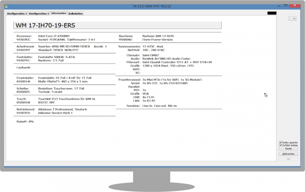 Während der Konfiguration können alle fertigungsrelevanten Daten, z. B. Maschinendaten, generiert werden. So werden Reklamationen minimiert und Produktionskosten gesenkt.